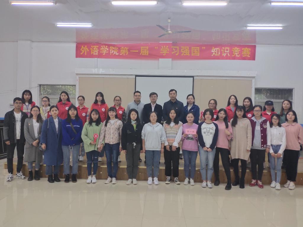 2019年11月1日星期五下午,由公司党员服务站主办的新葡的京集团35222vip第一届“学习强国”知识竞赛在南岸校区外语活动中心成功举办。出席本次活动的领导和嘉宾有公司党总支书记陈晓东,党委学工部、武装部、员工处副处长简福平,公司党总支副书记程亚,党委学工部、武装部、员工处员工公寓员工工作办公室主任冯湛,外语学院专职辅导员丁亮、以及老员工自我管理与服务委员会的员工代表。参加本次大赛的选手有新葡的京集团35222vip全体员工党员及部分入党积极分子,以及来自公司17、18、19级共计50余名员工代表参加了本次活动。
