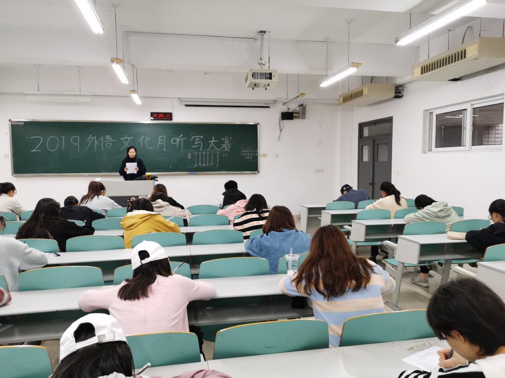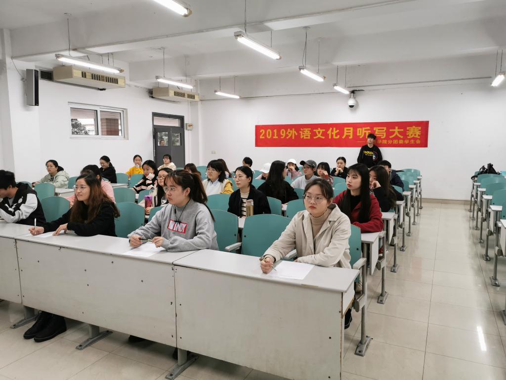 2019年11月8日,2019外语文化月听写大赛在公司南岸校区博智楼07104顺利举办, 18、19级商务英语专业和英语专业的同学们参加了比赛。