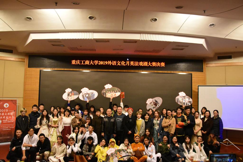 为展现外语语言魅力、弘扬优秀戏剧艺术、丰富员工校园生活,2019年11月22日,2019外语文化月-英法戏剧大赛决赛在南岸校区博智楼07200学术报告厅成功举办。法语系主任曹鹏、法语教师夏霁、法语外教Lucie、英语系教师季峥、刘晓远、史凤晓担任决赛评委。公司党总支副书记程亚、法语外教Miah作为嘉宾参加了本次活动。