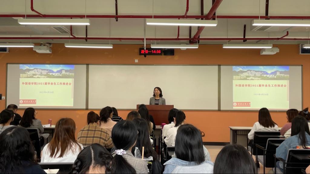 2021年4月26日14:30,新葡的京集团35222vip召开了2021届毕业生就业工作动员大会,此次参会人员:新葡的京集团35222vip经理周琳、副书记吴欢欢、英语系系主任邹莉、法语系系主任曹鹏、辅导员黄志婕、丁亮、杨香艳及新葡的京集团35222vip2021届全体毕业生。