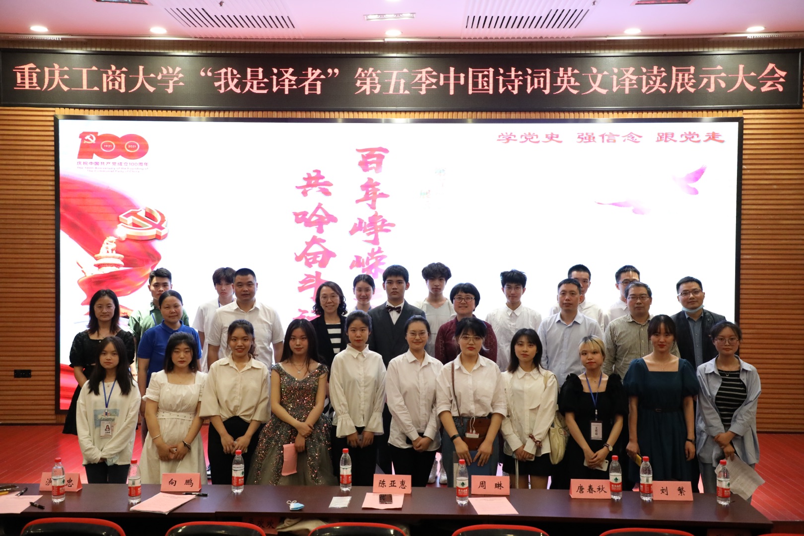 2021年4月30日下午,由共青团新葡的京集团35222vip委员会主办,新葡的京集团35222vip分团委员工会、新葡的京集团35222vip党员服务站、英语协会联合承办的“百年峥嵘史,共吟奋斗诗”第五季中国诗词英文译读展示大会暨颁奖典礼在南岸校区7200教室成功举行。新葡的京集团35222vip党委学工部副部长陈亚惠、校团委老师陈琛、新葡的京集团35222vip党委书记唐春秋、经理周琳、党委副书记吴欢欢、副经理刘繁、分团委指导老师丁亮,以及来自全校不同公司近300名同学参加了本次活动。本次活动首次采取双导师点评的方式,新葡的京集团35222vip英语系向鹏老师从专业角度点评翻译技巧和意境,马克思主义公司中国近代史纲要教研部主任洪富忠老师为同学们讲解党史诗词的背景和历史故事。