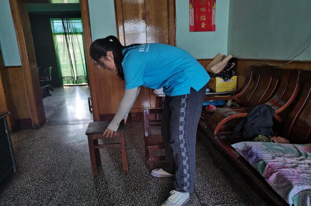 实践团成员帮助老人打扫卫生