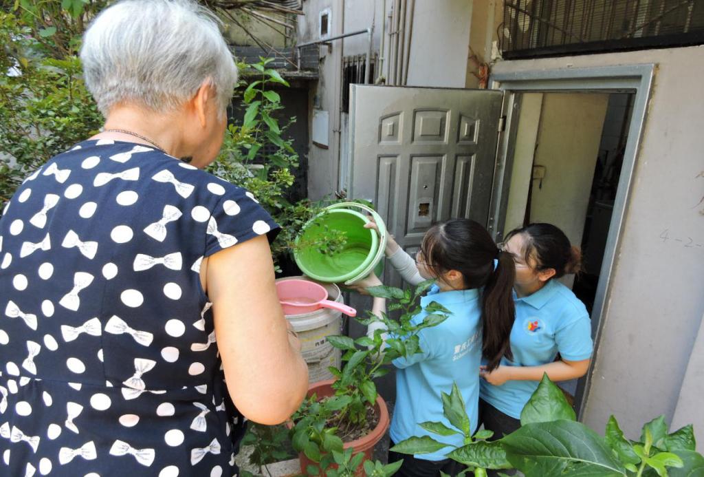 实践团成员帮助老人浇花