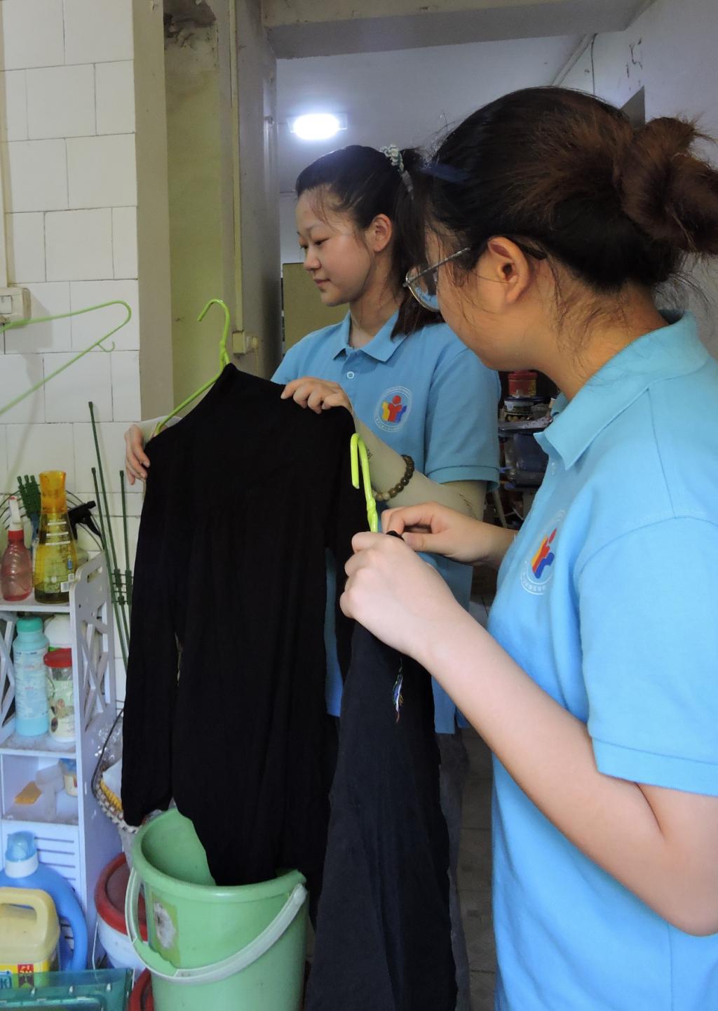 实践团成员帮助老人清洗衣物