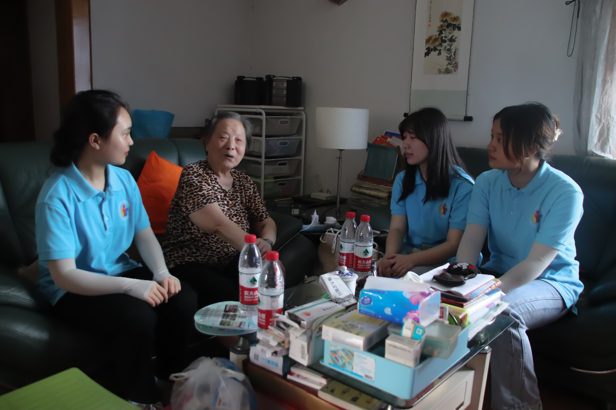 实践团成员倾听老人分享故事
