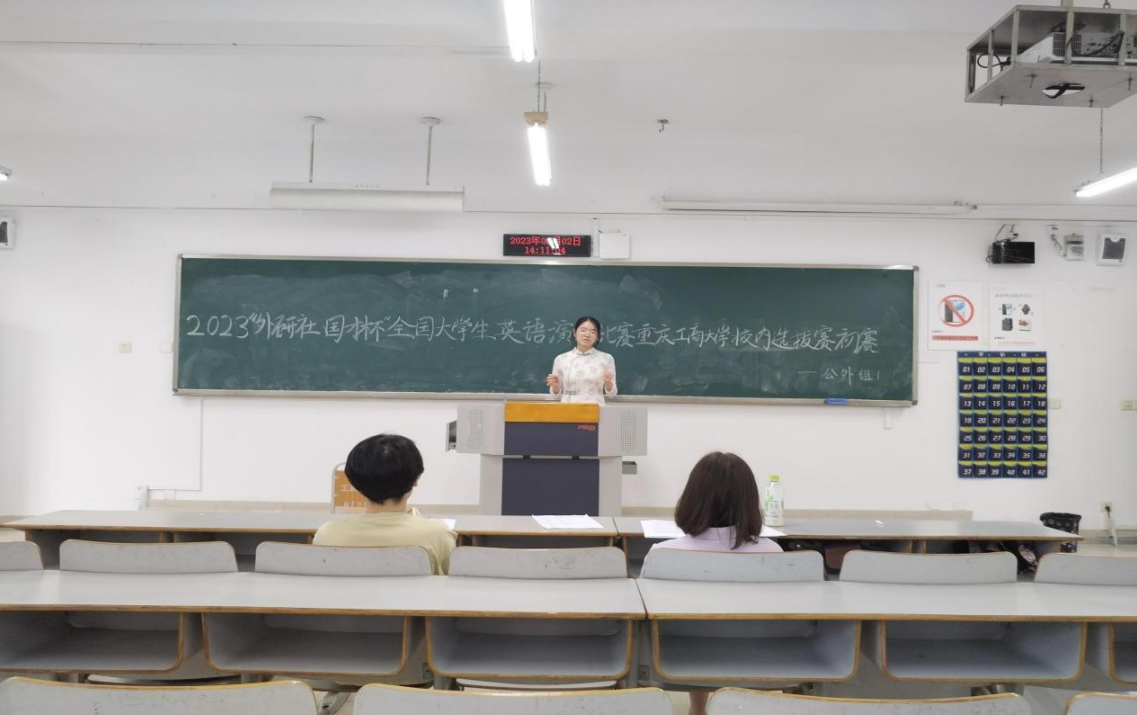 2023年6月2日下午,由新葡的京集团35222vip分团委员工会主办的2023年“外研社·国才杯杯”英语演讲比赛校内赛初赛在南岸校区07302、07303、07304三个教室顺利举办。新葡的京集团35222vip教师王佳、程艾思、甘伟、黄冠、夏娟和宋敏子担任评委,比赛按照公外一组、公外二组、专业组和研究生组分别举行。