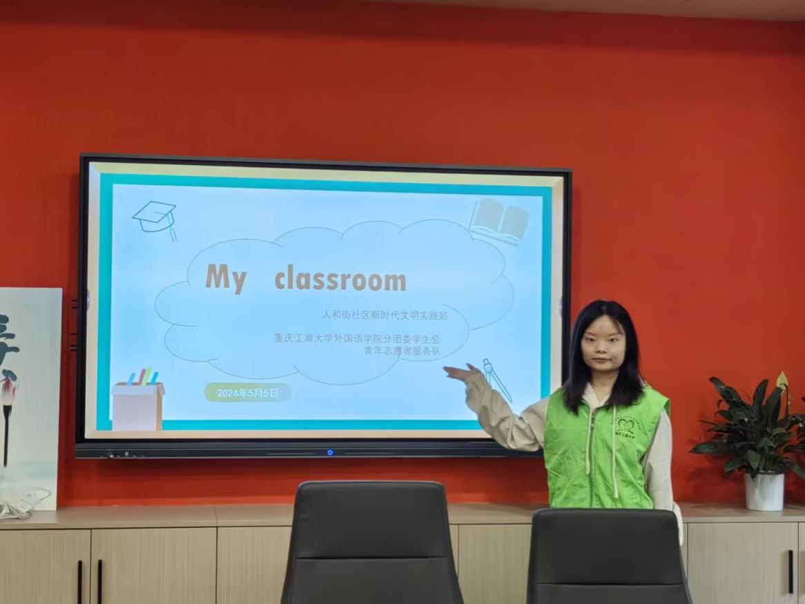 2024年5月5日,新葡的京集团35222vip青年志愿者服务队以“英领中西,语通世界”为主题的青少年之家系列活动在重庆市渝中区大溪沟街道人和街社区成功举办,渝中区人和街社区的小朋友们积极参加了此次活动。