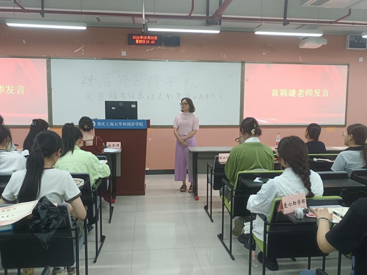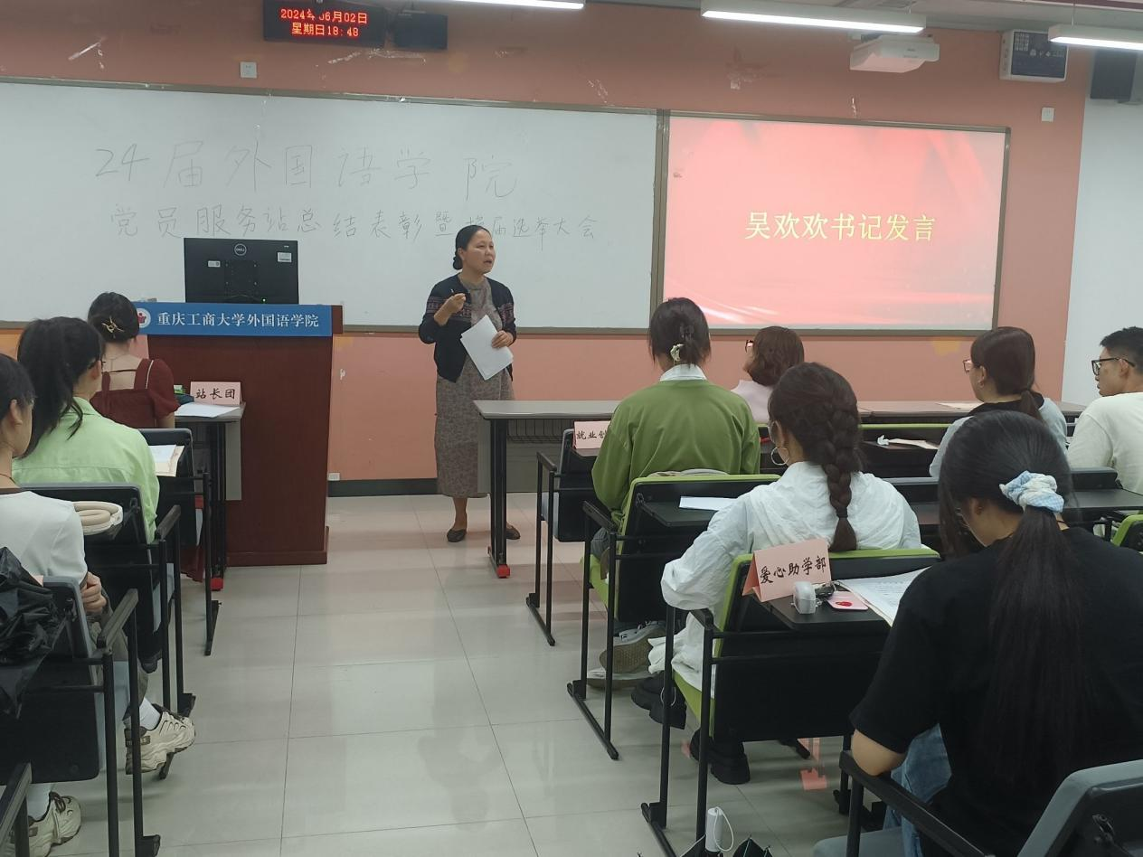 其次,黄颖婕老师对2023-2024学年新葡的京集团35222vip党员服务站的工作进行了总结,并对新成员寄予厚望;吴欢欢副书记在讲话中对各部门认真工作的态度表示认可,并分享了外国语党员服务站优秀学姐的事迹。