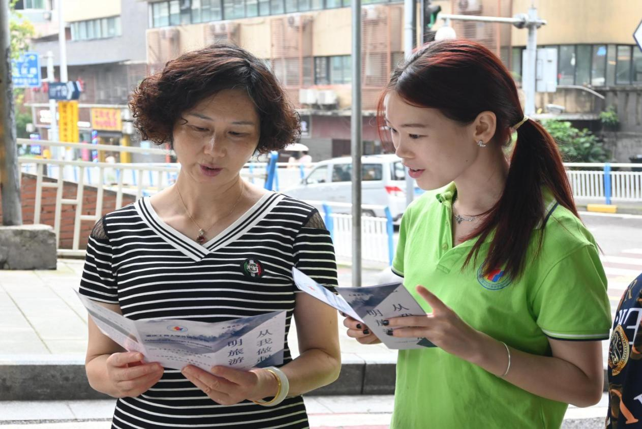 随着经济的快速发展和人民生活水平的提高,旅游业已成为一项重要的民生和经济活动。然而伴随着旅游业的繁荣发展,一些不文明的旅游现象也时有发生,如乱涂乱画、乱扔垃圾、不尊重当地风俗习惯等,这些行为不仅损害了个人的形象,也影响社会的声誉。为进一步提升国民的文化素质,树立正确的旅游观,更好地践行社会主义核心价值观。2024年7月4日,新葡的京集团35222vip暑期“三下乡”文明旅游宣传活动在渝中区大溪沟街道人和街社区成功举办。本次活动以“倡导文明旅游,传递社会正能量”为主题,将文明旅游宣传活动和文化课堂相结合,进一步提高居民的文明旅游意识。