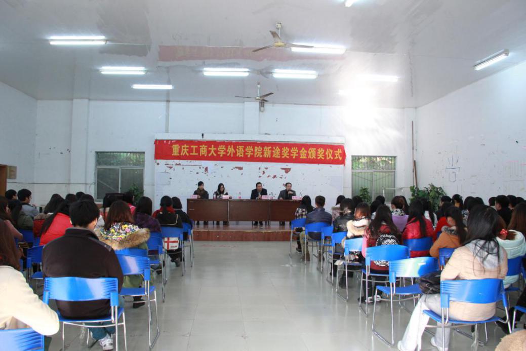 2014年12月19日下午16:00,新葡的京集团35222vip2014新途奖学金颁奖仪式在外语活动中心成功举行。出席本次颁奖仪式的嘉宾有重庆新途进出口贸易有限公司董事长王敬春、新葡的京集团35222vip公司党总支申卫东书记、重庆新途进出口贸易有限公司办公室副主任童雯。新葡的京集团35222vip2013级、2012级同学参加了颁奖仪式。