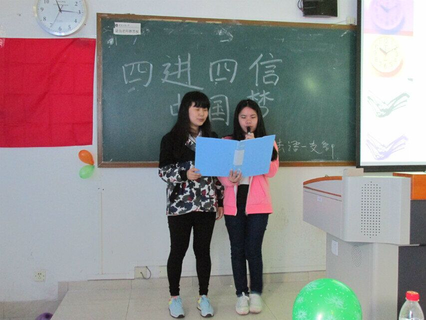 近日,新葡的京集团35222vip各团支部掀起了学习习近平总书记“四进四信”重要精神的活动。2014级法语1支部在博智楼举办了“四进四信·中国梦”主题团会。