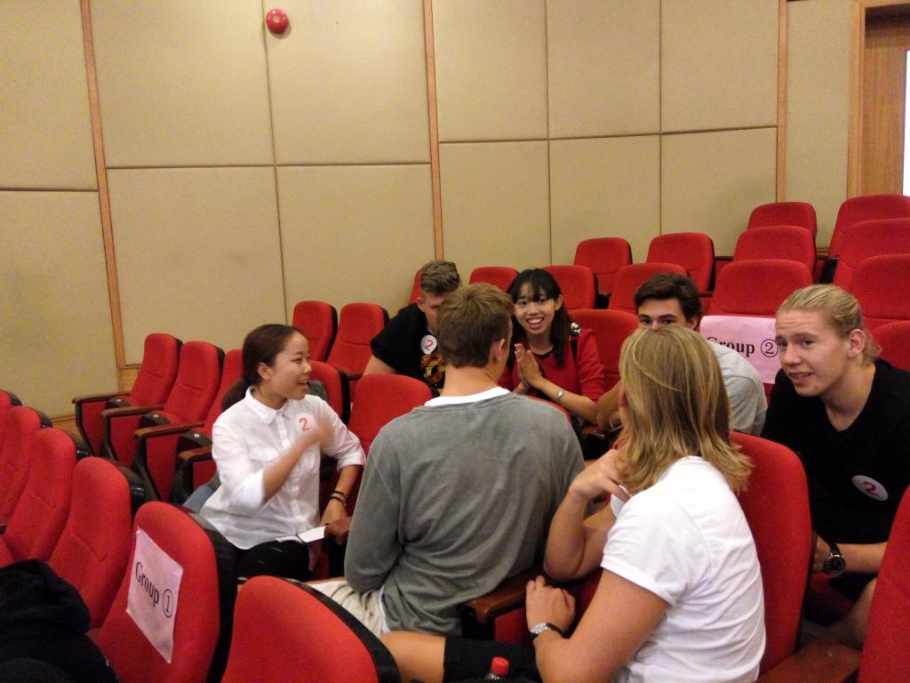 武术表演结束后,职工们在志愿者的陪同下前往7200会议厅参加中丹员工座谈会。本次座谈会由新葡的京集团35222vip牛婧懿老师主持。座谈会开始,韩艳处长对丹麦职工的到来表示热烈欢迎,同时也对重庆及公司的基本情况进行了介绍。随后曹俊老师带来中国文化讲解,京剧、茶艺、变脸、龙图等,源远流长、博大精深的中国文化吸引着在座的每一位职工。讲解过后是志愿者们精心安排的“Coffee Break”环节,尽管是休息时间,职工们依然兴趣不减地同志愿者一起讨论两国间的文化差异,共同分享各自的学习生活。最后是每个小组的总结发言,他们分别就餐桌文化、教育体制、日常交往等方面进行对比总结,切实做到了寓乐于学。最后,为期一天的交流活动在两江夜游后落下帷幕。