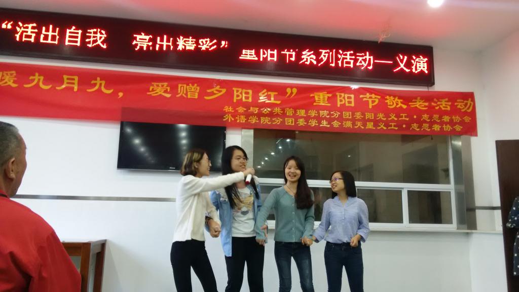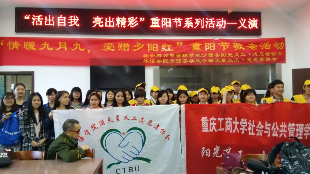 2015年10月18日上午9点,新葡的京集团35222vip“情暖九月九,爱赠夕阳红”敬老活动在南岸区社会服务中心顺利开展。此次活动由新葡的京集团35222vip满天星义工志愿者协会和社会与公共管理公司阳光义工志愿者协会共同举办。