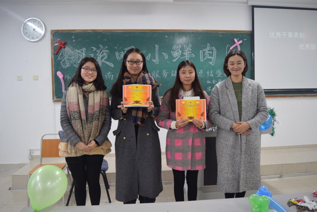 为了建设美丽党站,加深干部干事们的“大家庭意识”,2015年12月18日14:00,南16A3党员服务站期末总结表彰大会在博智楼07305教室举行。参加本次总结表彰大会的有指导老师王勇刚,站长陈凤、副站长朱增艳、黎盼以及全体部长和干事们。