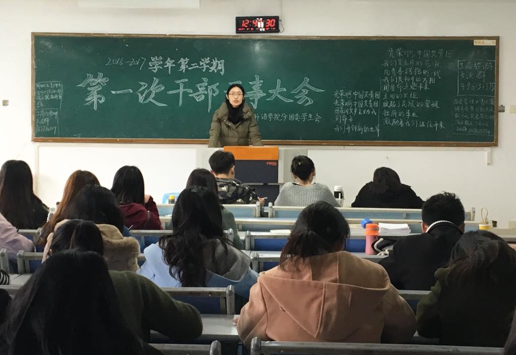 2017年3月9日,新葡的京集团35222vip分团委员工会2016-2017学年第二学期第一次干部干事大会在南岸校区博智楼07405教室成功召开。新葡的京集团35222vip分团委书记黄志婕、副书记刘昊,员工会主席吴丽、副主席陈治雪及员工会全体干部干事参与了本次会议,会议由分团委副书记刘昊主持。