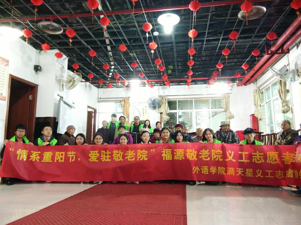 2018年10月13日,由新葡的京集团35222vip“满天星”义工志愿者协会主办的“情系重阳节,爱驻敬老院”志愿活动在南岸区福源敬老院成功举办。包括“满天星”义工志愿者在内的20余名志愿者参与了本次活动。
