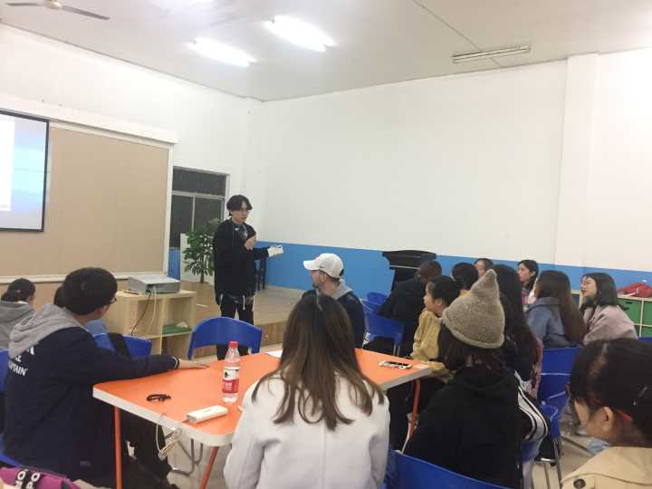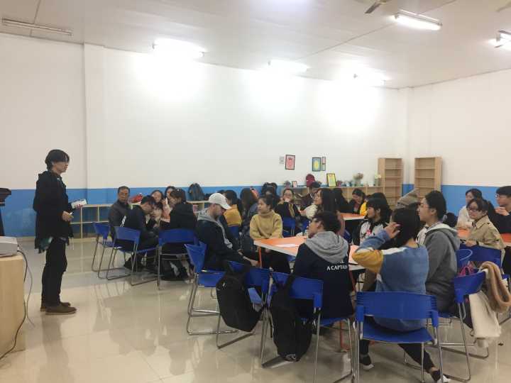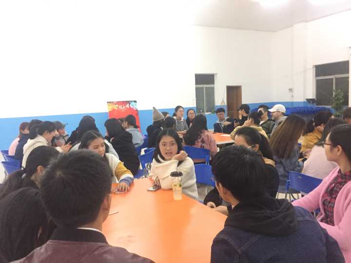 活动伊始,主持人马淑滢首先向大家介绍了自己的家乡河北沧州,引出本次活动主题“Hometown in your eyes”。随后,外教Cam上台向大家展示了三组他的家乡Tucson的照片,且描述了那里美丽无比的风景、变幻无常的气候等,让大家对Tucson有了更深的了解。然后就到了各组的“Free talk”环节,在场人员都积极参与其中,向大家讲述自己眼中的家乡,现场气氛十分火热,充满欢声笑语。在此之后,陈旌儒同学主动上台向大家介绍了自己的家乡青海,更有郭滕同学精心准备了PPT给大家展示她的家乡贵州的美食,美景,和当地少数民族的传统习俗。随后,主持人又邀请外教Sam上台给大家介绍了他的家乡泰国,他绘声绘色地讲述了泰国的寺庙文化,迷信传统和旅游胜地,并表示欢迎大家到泰国旅游。活动最后,组织部干事给大家分发糖果,全体人员上台合影留念。