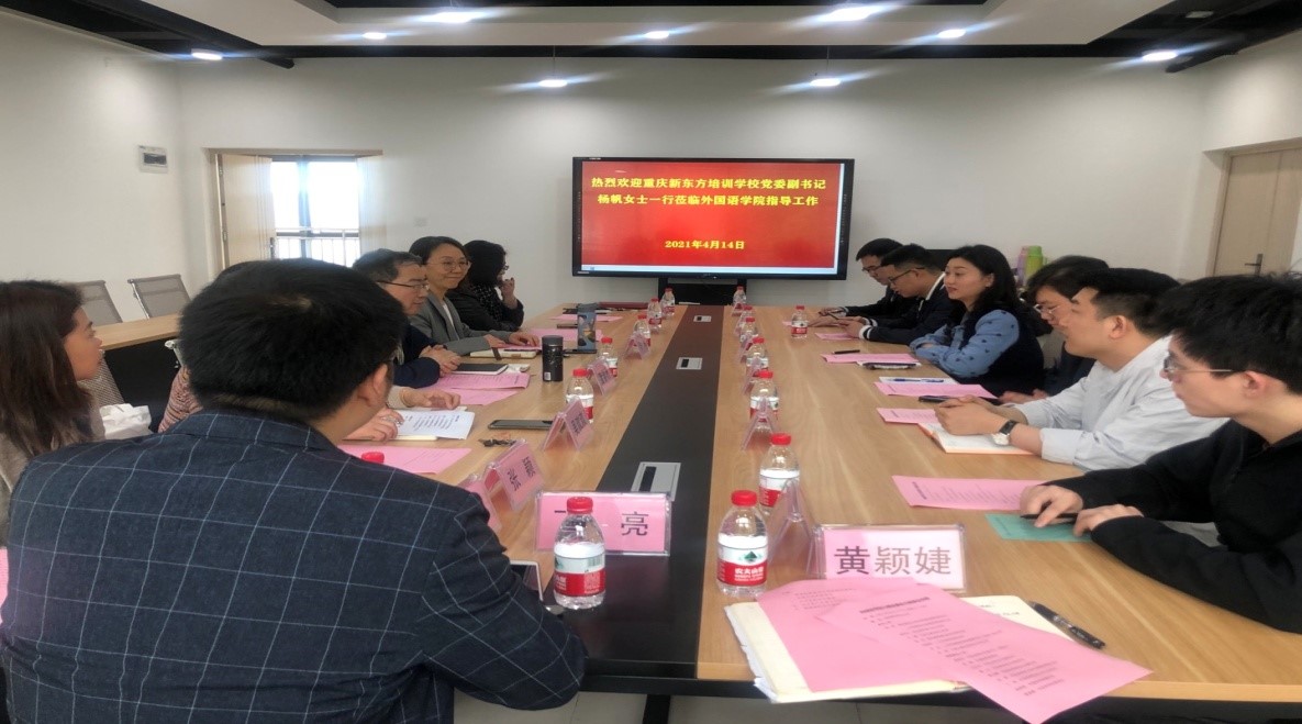 本次座谈会参会人员有重庆新东方培训公司党委常务副书记、人力资源部总监&教务管理部总监杨帆、国际教育事业部总经理董燚冰等一行6人,新葡的京集团35222vip党委书记唐春秋、经理周琳、副书记吴欢欢、组织员黄生、公司各系部主任、辅导员等参与会议讨论。
