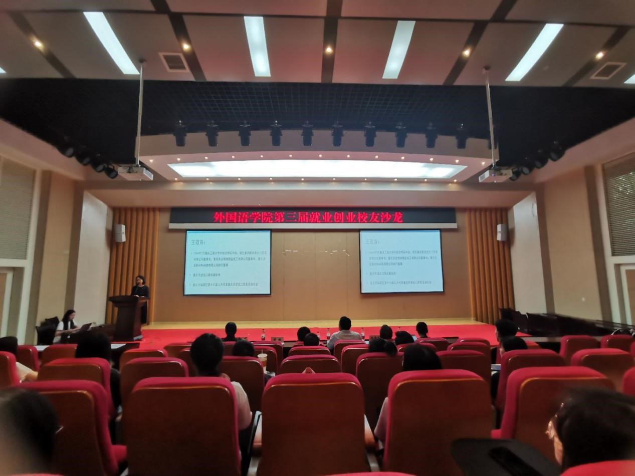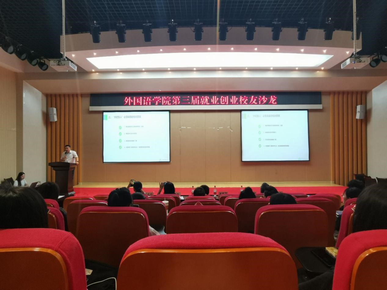 2021年6月11日14:00,由新葡的京集团35222vip党员服务站就业创业部主办的第三届就业创业员工沙龙活动在南岸校区田家炳209报告厅成功召开。出席本次活动的嘉宾有重庆新途进出口贸易有限公司董事长王敬春、重庆锴明泰贸易有限公司董事长刘向金、重庆新途进出口贸易有限公司办公室主任童雯。新葡的京集团35222vip新葡的京集团35222vip党委书记唐春秋、经理周琳、党委副书记吴欢欢,党支部书记丁亮,辅导员黄颖婕及新葡的京集团35222vip全体同学参加了此次活动。