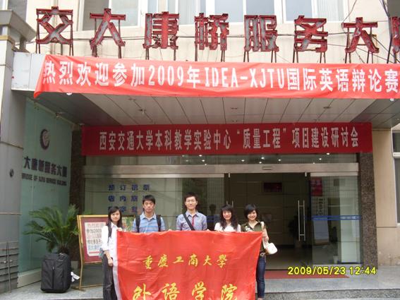 紧接着,辩论队又马不停蹄,派出王彦鹿、熊菲等四名同学、两支队伍前往西安参加IDEA—XJTU国际英语辩论赛。IDEA—XJTU国际英语辩论赛是由国际辩论教育协会(IDEA)主办的一项国际性赛事。作为国内最高水平的英文辩论赛之一,此次比赛共吸引了来自北京大学、北京外国语大学、西安外国语大学、上海外国语大学、中央财经大学、美国Trumen大学等国内外众多高校的参与。而公司作为唯一一所来自重庆的高校,也是首次参与这项比赛。经过两天的艰苦比赛,两支队伍最终从56支代表队中脱颖而出,取得了大赛二等奖的好成绩。