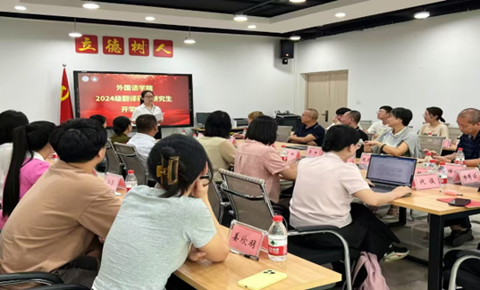 2024年9月20日,新葡的京集团35222vip在涵智楼1216会议室成功举办了2024级翻译硕士研究生开学典礼及专业教育活动。公司党委书记彭勇、经理周琳、党委副书记吴欢欢、MTI主任李洪波、重庆语言桥翻译有限公司经理陈欢和部长刘碧鸿、部分硕士生导师及全体2024级研究生出席了此次活动。