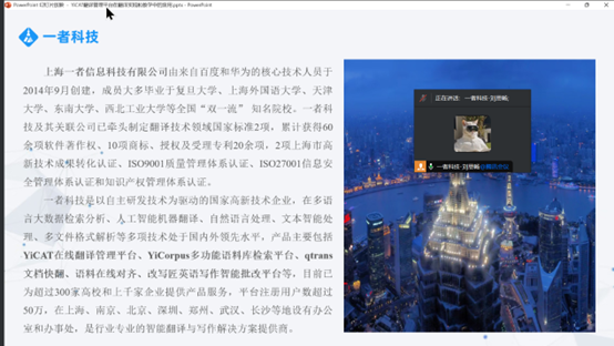 在培训中,刘思畅老师详细介绍了YiCAT平台的核心功能和独特优势,包括翻译项目管理、语言资产管理、班级成员管理、在线作业与考试等多个模块。他结合实际案例,通过操作演示,系统展示了如何高效利用YiCAT平台进行翻译教学管理、翻译项目团队协作以及术语库和记忆库的设置与管理。