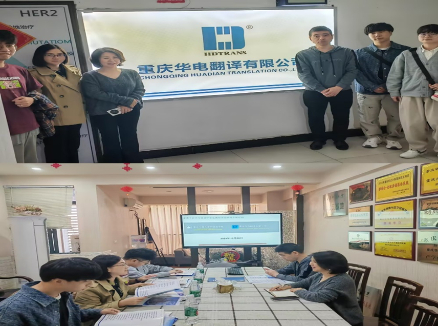 2024年10月28日下午,新葡的京集团35222vip副经理邹莉、英语系教师刘勇和2名员工一行4人,前往重庆华电翻译有限公司进行实地调研交流与学习,开展促进2025届毕业生就业访企拓岗专项行动。